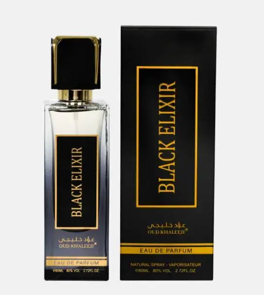 BLACK ELIXIR is a bold and magnetic fragrance designed for the modern man who exudes mystery and charm. It opens with an intense fusion of spicy and aromatic notes that immediately capture attention. The heart unveils a smooth blend of warm woods and florals, adding depth and sophistication. The base is dark, rich, and long-lasting — with notes of vanilla, amber, and smoky oud creating a signature of power and seduction.